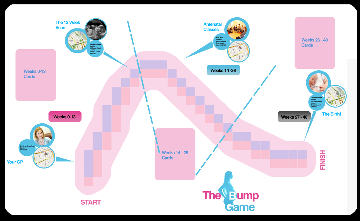 There were a lot of clever people there, and they made a lot of cool stuff. Our project was The Bump Game – a board game about pregnancy.