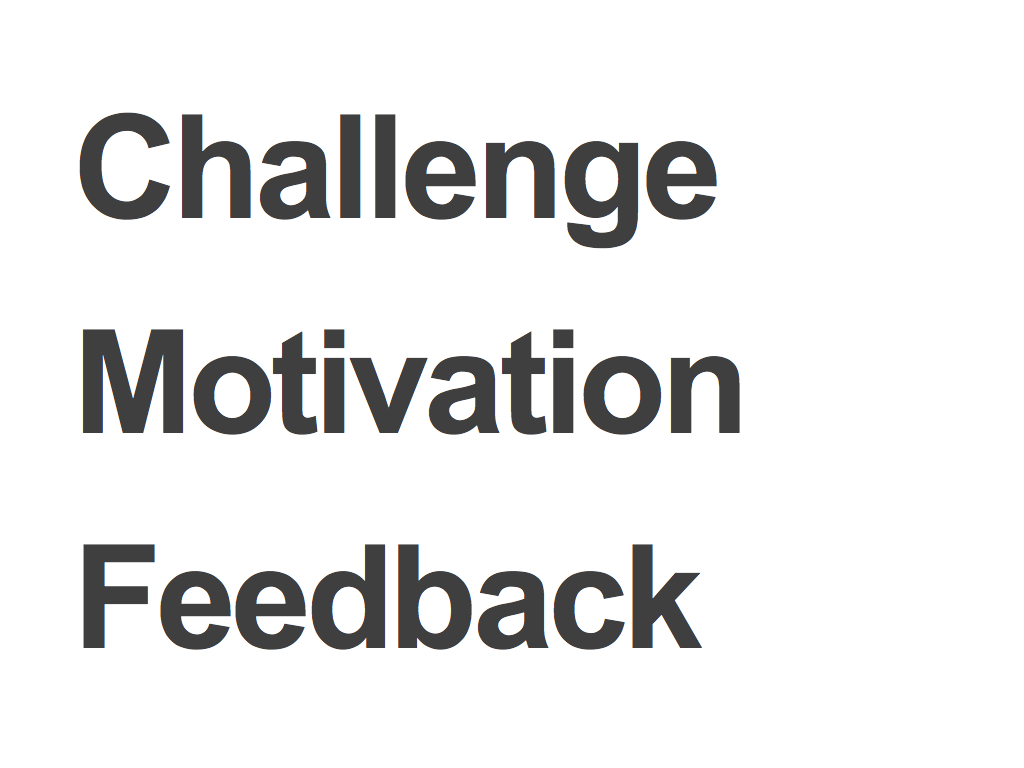 The first is Challenge. The system needs to give you something to do. And that thing has to be just at the level of your ability. As you improve, the challenge should get harder. All good games do this.